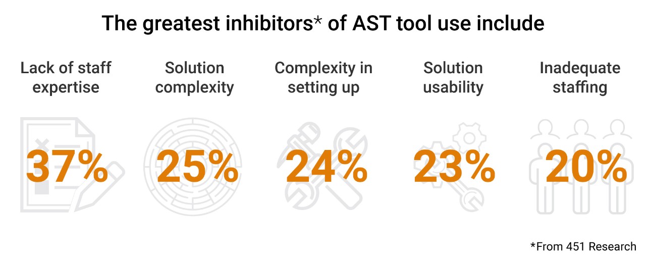 In a report by 451 Research, survey respondents identified the factors that inhibit AST tool use.