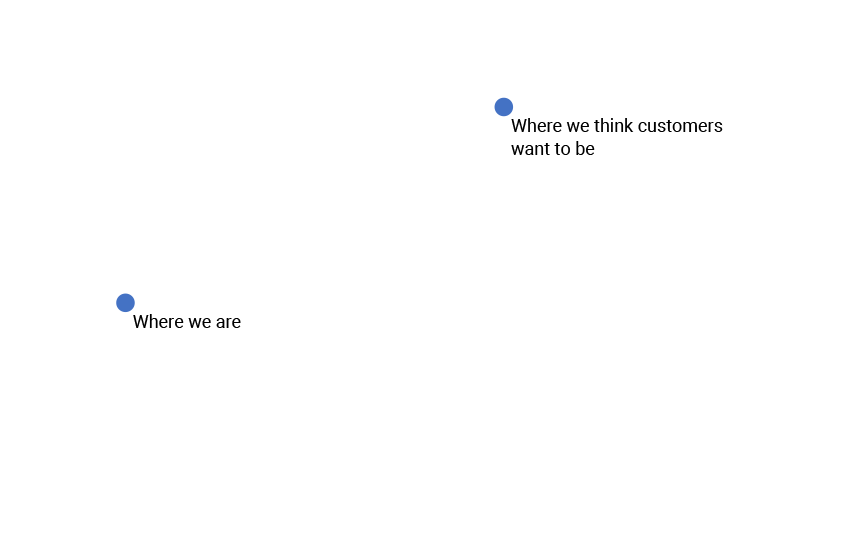 In retrospect, traditional approaches to software engineering were naïve. From a business standpoint, the plan has always been to build software that gives value to customers. You can think of this as building a piece of software that moves us from where we are to where we think customers want to be.