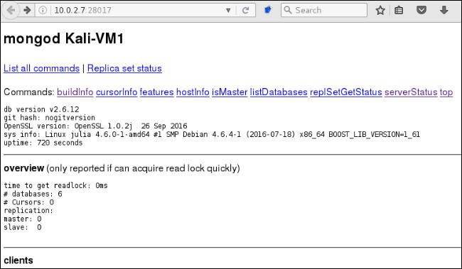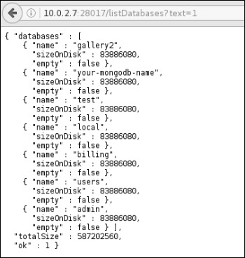 MongoDB also provides an optional HTTP and REST interface which, if enabled, exposes sensitive information about the databases and the underlying file system. These interfaces may be enabled in the configuration file as shown below or from the command line when starting the MongoDB instance. By default, they will bind to the database port plus 1000 (i.e., 28017).