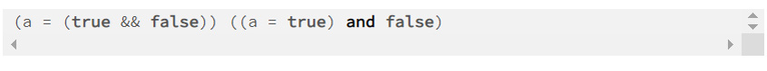 Let’s revisit the above example with this behavior in mind. Using parentheses to illustrate the order of operations, the following illustrates how && and and operate differently.