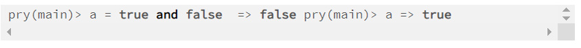 However, the story about Ruby’s boolean operators is not quite that simple. If you’re like me and you get excited over the idea of clean, readable code, you might run off and mass-replace all of your &&’s with and’s, and your ||’s with or’s. Before you do that, open up your favorite Ruby console (I’m partial to pry, myself) and try the following: