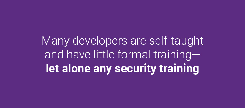 For most software developers, security training is an afterthought. Programming classes focus on creating functionality, not preventing threats. Many developers are self-taught and have little formal training—let alone any security training.