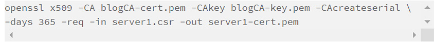 ECDSA: openssl req -newkey ec:blogCA-cert.pem -keyout server1-key.pem -out server1.csr