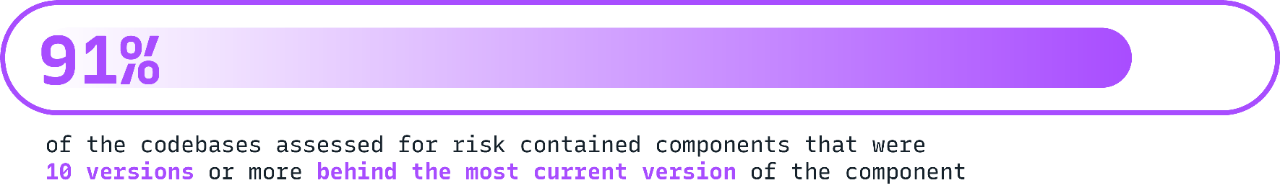 2024 年のオープンソース·セキュリティ&リスク分析(OSSRA)レポートでは、オープンソース・ソフトウェア利用者の保守の実践を改善することが重要であることを強調し、多くの組織が、使用しているオープンソース・コンポーネントを最新の状態に保つのに大幅な遅れが生じていることによって引き起こされるセキュリティ上の懸念をまとめています。このレポートは、ほとんどの商用コードベースに古いコンポーネントが含まれており、その91%は利用可能な最新バージョンより10バージョン以上前のコンポーネントが含まれているという厳しい状況を明らかにしています。さらに、コードベースの49%には、過去24か月以内に開発活動がなかったコンポーネントが含まれていました。